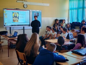 У среду 06.11.2024. године одржан је угледно јавни час који су реализовале наставнице српског језика и књижевности Сенка Стијовић и Бранкица Перовић, као и наставница историје Љиана Белошевић, наставница географије Лана Николић и наставница ликовне културе Нада Аранђеловић. Часу су присуствовали ученици од петог до седмог разреда.