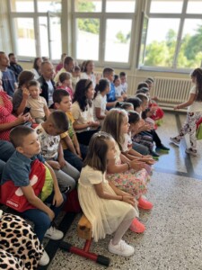 Ђаци прваци су данас дочекани пригодном приредбом коју су  припремили њихови старији другари са учитељицама. Ђаци и њихови родитељи су уживали и весело провели први школски дан. Директор школе Милена Симић пожелела им је срећан почетак. Ученицима да им сваки дан буде пун игре, знања и дружења, а родитељима пуно стрпљења и рада. Присутнима су се представиле и учитељице Марија Доганџић, Славица Матејић и Весна Јовановић.