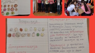 Међународни дан толеранције обележен је у нашој школи. Вршњачки тим и ученици шестог разреда су се потрудили да направе беџеве и пано и тако нас посете шта подразумева толерантност и равноправност.